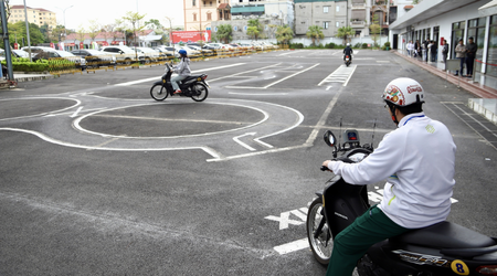 Sân tập đạt chuẩn, tập xe đúng quy trình thi thật, học viên làm quen toàn bộ bài thi trước khi thi.